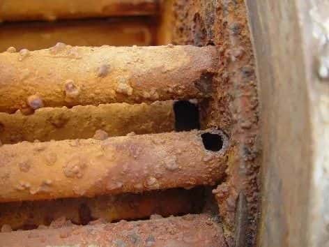在工程结构中,一般需要将不同的结构件相互连接,缝隙是不可避免的,如:不同结构件之间的连接,如金属和金属之间的铆接、搭焊、螺纹连接,以及各种法兰盘之间的衬垫等金属和非金属之间的接触。特别是管壳式换热器的管板和管束间,无论采取何种胀接方式,缝隙是不可避免的。缝隙腐蚀与空穴、垫片下、搭接缝、表面沉积物以及螺帽、铆钉帽下的缝隙内存在的少量静止的溶液有关。环境中的腐蚀性液体可以进入到这些缝隙中,但又不能自由流动,因此,造成了这种特殊的腐蚀形式。几乎所有的金属都可能产生缝隙腐蚀,但以依赖钝化而耐蚀的金属,如不锈钢、铝合金、钛合金等更容易产生这种腐蚀。几乎所有的腐蚀介质(包括淡水)都能引起金属的缝隙腐蚀,而含Cl-的溶液通常是缝隙腐蚀最敏感的介质。在压力容器上,常发生在各种开孔的法兰密封垫下、管壳式换热器的管板孔内、覆盖层破损处、螺栓连接的接合部和螺纹结合部等处。缝隙是引起腐蚀的主要设计缺陷,也是许多压力容器在设计中难以避免的,特别是结构的连接处和支撑处。