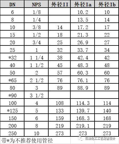 根据《化工配管用无缝及焊接钢管尺寸选用系列》(HG/T 20553-2011)中规定,常用钢管的外形尺寸摘录如下: